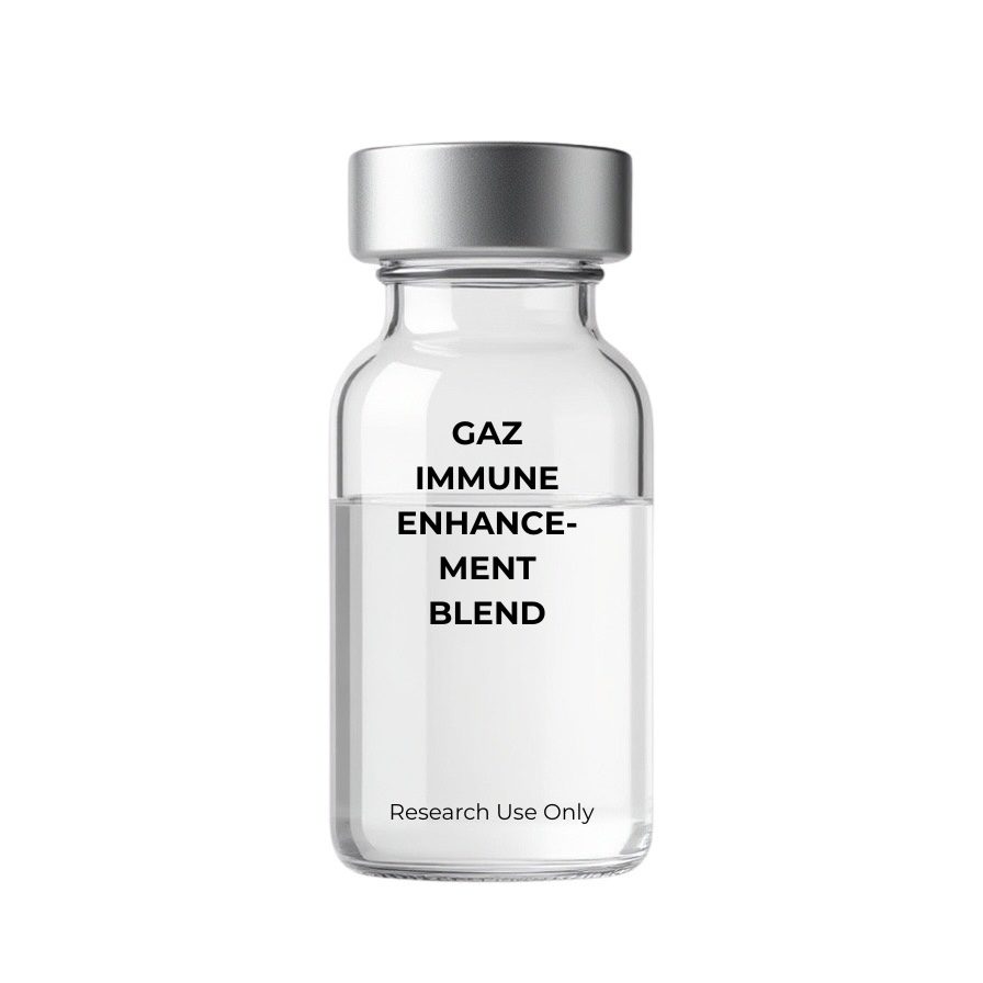 GAZ Immune Enhancement Blend (Injectable antioxidant and immunological research complex) combines: Glutathione 200mg/mL (tripeptide master antioxidant — GSH — central to cellular redox balance and immune function), Ascorbic Acid 200mg/mL (Vitamin C — ascorbate antioxidant, collagen synthesis cofactor, immune cell function), Zinc Sulfate 2.5mg/mL (essential trace mineral — zinc-dependent enzyme cofactor, T-cell function, wound healing). Injectable delivery provides direct systemic bioavailability for immune research applications, bypassing oral oxidation and absorption limitations of glutathione.