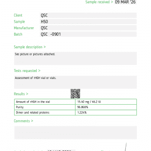 HGH (Recombinant Human Growth Hormone (191 aa, somatropin)) is a 191-amino acid recombinant protein. Recombinant human growth hormone acting directly at the GH receptor (GHR) — bypasses the pituitary entirely with non-pulsatile pharmacokinetics. Stimulates hepatic IGF-1 production, anabolic signalling in muscle via IGF-1R, adipose lipolysis, and GH-induced insulin resistance at supraphysiological doses.