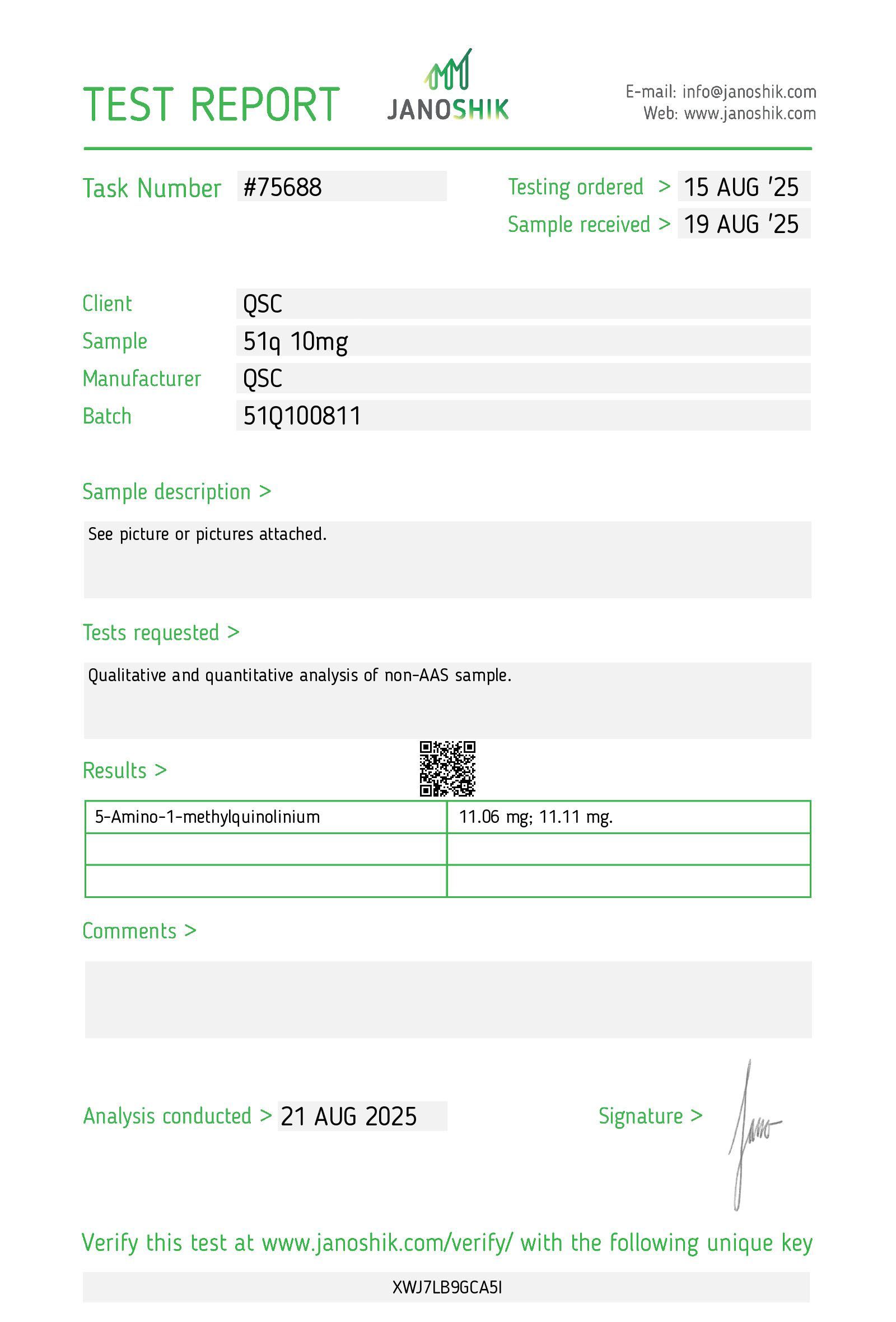 QSC 5-Amino-1MQ (NNMT inhibitor) — ≥99% HPLC purity, MS confirmed, Janoshik COA. Research use only.