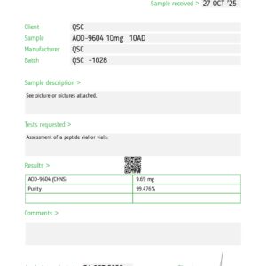 AOD-9604 (Modified HGH Fragment 177-191 (Tyr-hGH₁₇₇₋₁₉₁)) is a 17-amino acid modified GH C-terminal fragment. Modified HGH C-terminal fragment (Tyr + residues 177-191) activating lipolysis via beta-3 adrenergic receptor pathway in adipose tissue — without GH receptor binding. No IGF-1 stimulation, no anti-insulin effects, no systemic GH anabolic activity. Adipose-selective fat metabolism. Phase 2b human trial data available (obesity).