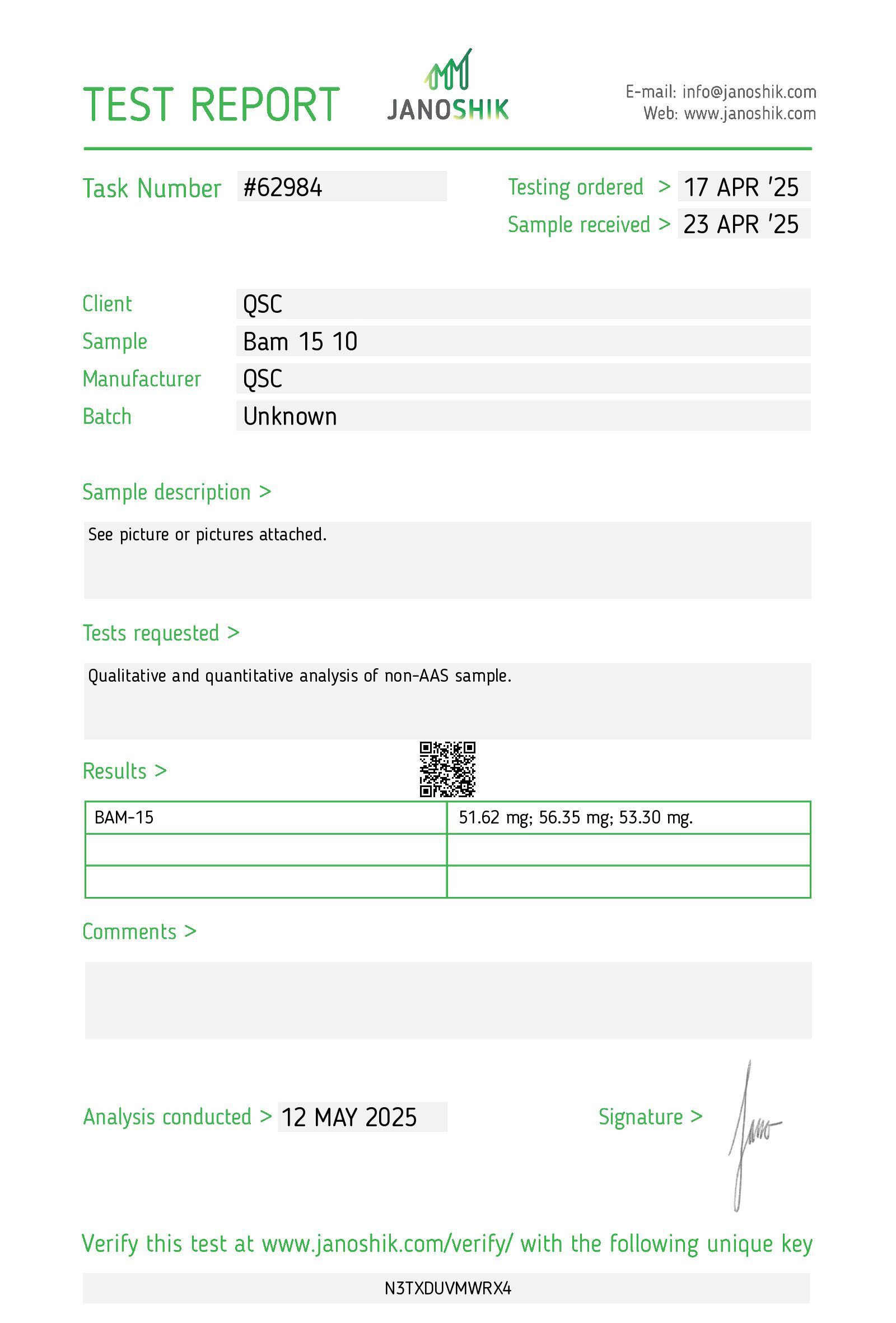 BAM15 is a protonophore that dissipates the mitochondrial proton gradient — uncoupling OXPHOS from ATP synthesis and driving energy dissipation as heat. Critically, BAM15 does not penetrate the plasma membrane and does not cause hyperthermia in vivo — the primary safety limitation of classical uncouplers (DNP). Romero et al. 2020: fat mass reduction and improved insulin sensitivity in DIO mice without hyperthermia. CAS 2061936-25-0.