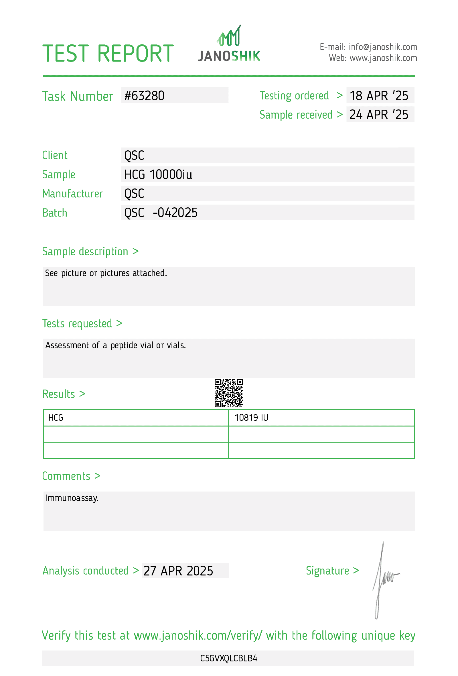 HCG (Human Chorionic Gonadotropin — LH receptor agonist) is a Glycoprotein hormone (alpha: 92aa + beta: 145aa + C-terminal extension). Glycoprotein hormone activating LH receptor (LHCGR) — structurally identical alpha subunit to LH, with unique beta-subunit C-terminal extension extending half-life (36hr vs 2hr for LH). Stimulates Leydig cell testosterone, Sertoli cell function, spermatogenesis maintenance, and corpus luteum progesterone.