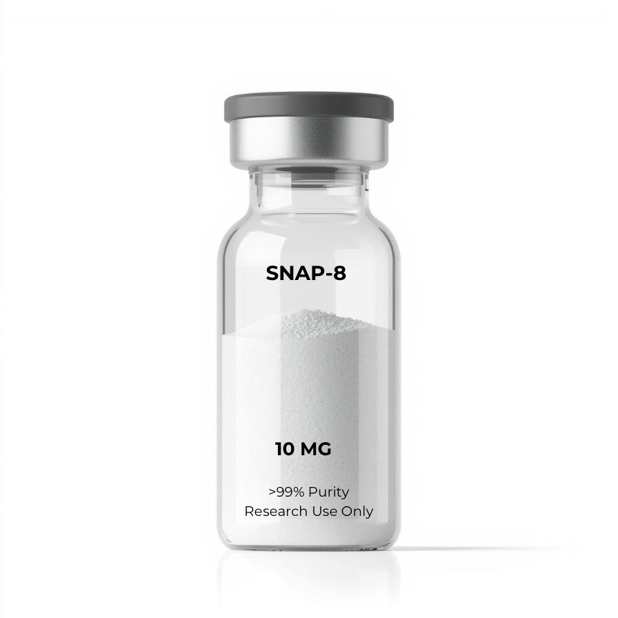 Snap-8 (Acetyl Glutamyl Heptapeptide-3 — SNARE complex inhibitor) is a 8-amino acid SNAP-25 N-terminal analog. Octapeptide analog of SNAP-25 (synaptosomal-associated protein-25) N-terminal domain, competitively inhibiting SNARE complex formation required for acetylcholine vesicle docking and release at the neuromuscular junction. Reduces muscle contraction amplitude — cosmetic wrinkle reduction mechanism.