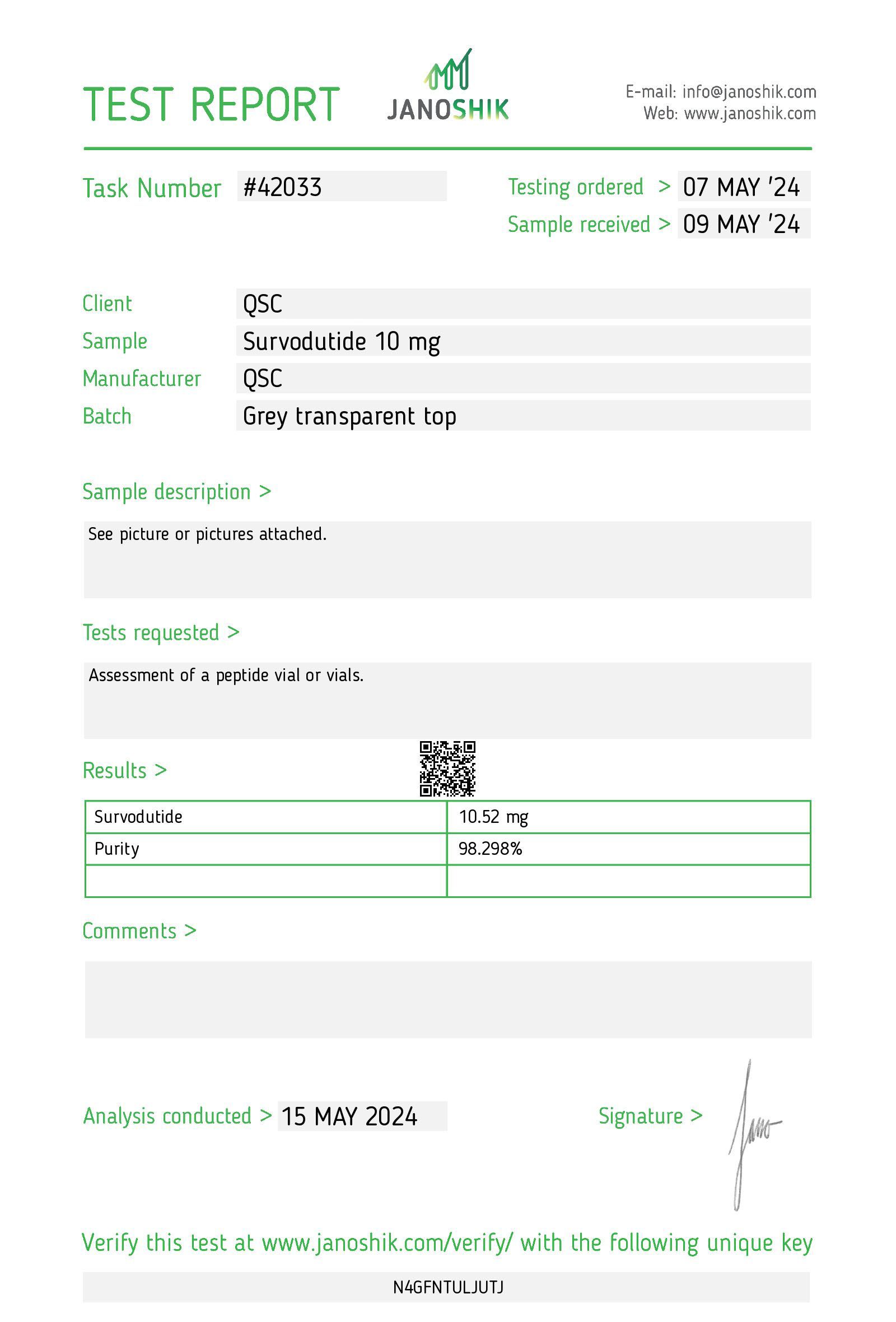 | COA | Janoshik-independent, publicly verifiable |