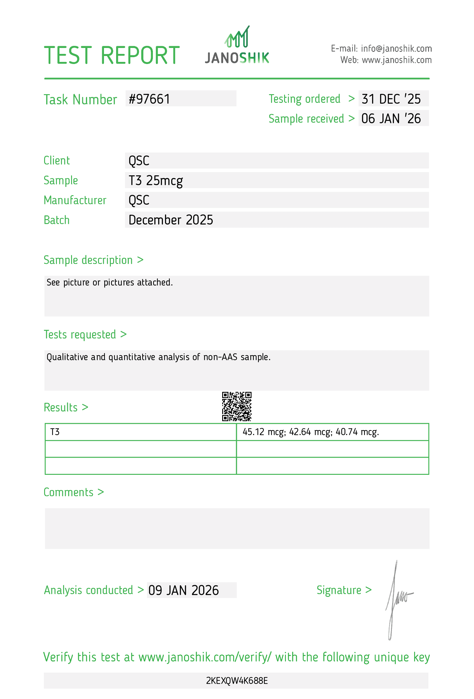 Liothyronine (T3) is the biologically active thyroid hormone — 3-4× more potent than T4 at thyroid receptor binding. Directly activates TRα/TRβ without peripheral deiodination. Research: metabolic rate regulation, thermogenesis, thyroid receptor pharmacology, hypothyroid models. CAS 6893-02-3.