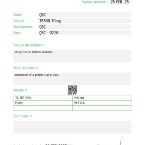 QSC TB-500 (Thymosin Beta-4 fragment) — ≥99% HPLC purity, MS confirmed, Janoshik COA. Research use only.