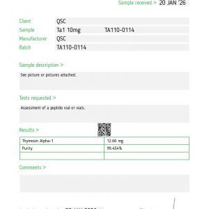 Thymosin Alpha-1 (Tα1 — Thymalfasin (28-aa thymic peptide)) is a 28-amino acid N-terminally acetylated thymic peptide. Naturally occurring thymic peptide activating TLR2 and TLR9 on dendritic cells and T-cells, promoting type I IFN production in plasmacytoid dendritic cells, Th1 polarisation, T-cell maturation in thymus, and NK cell cytotoxicity. Approved in 35+ countries as thymalfasin. N-terminal acetylation required for activity.