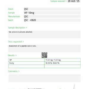 VIP (Vasoactive Intestinal Peptide — VPAC1/VPAC2 agonist) is a 28-amino acid neuropeptide. 28-amino acid neuropeptide activating VPAC1 (expressed broadly) and VPAC2 (expressed in pancreas, heart, lung) receptors — class B GPCRs signalling via cAMP. Produces vasodilation, smooth muscle relaxation, immunomodulation, SCN circadian pacemaker regulation, bronchodilation, and GI secretagogue effects.