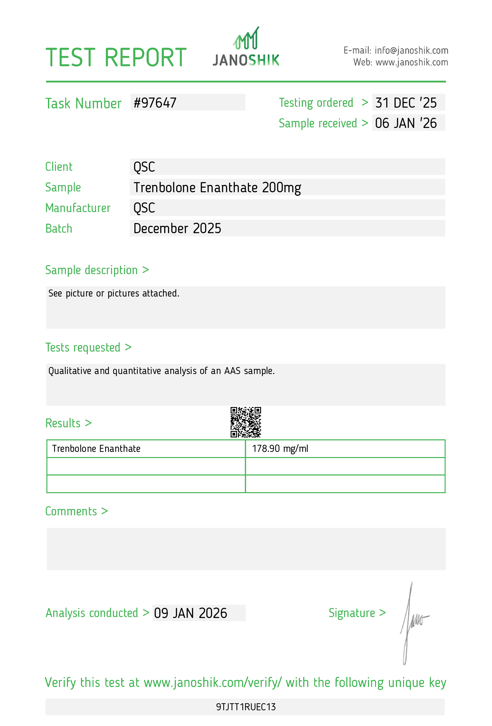 | COA | Janoshik-independent, publicly verifiable |